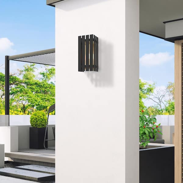 Bellshire 13 in. 1-Light Black Outdoor Hardwired Wall Lantern Sconce with No Bulbs Included