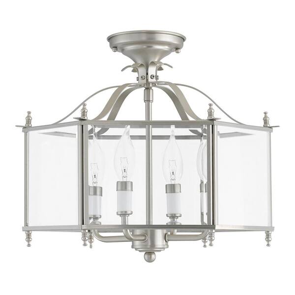 Burleson 15.5 in. 4-Light Brushed Nickel Convertible Pendant/Semi Flush with Clear Beveled Glass