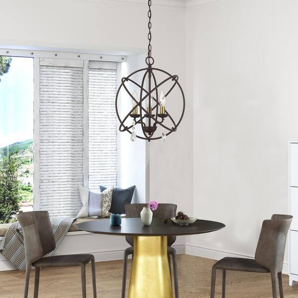 Cahill 15.5 in. 3-Light Bronze Convertible Mini Chandelier/Ceiling Mount with Antique Brass Candles and Crystals
