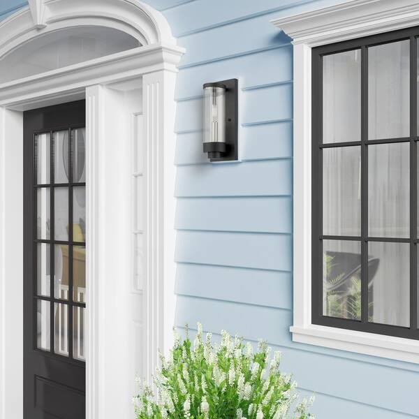 Cavanaugh 12 in. 1-Light Textured Black Outdoor Hardwired ADA Wall Lantern Sconce with No Bulbs Included