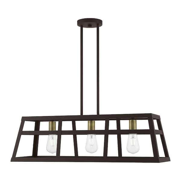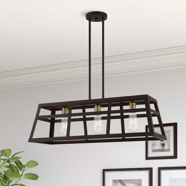 Charterwood 3-Light Bronze Linear Chandelier with Antique Brass Accents