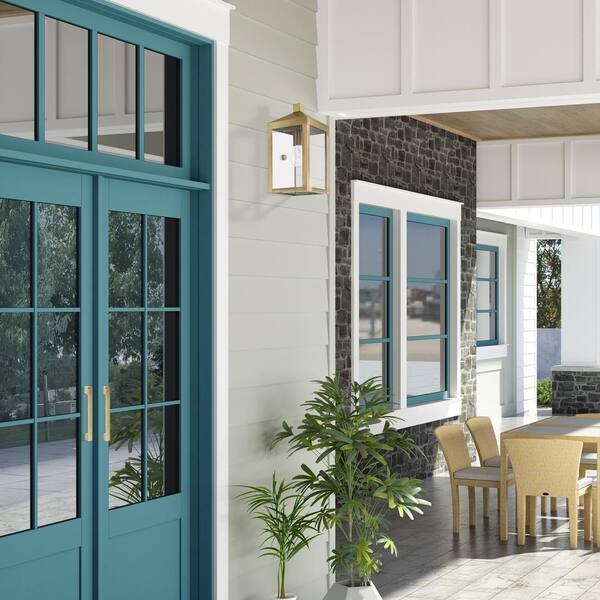 Creekview 12.75 in. 1-Light Antique Brass Outdoor Hardwired Wall Lantern Sconce with No Bulbs Included