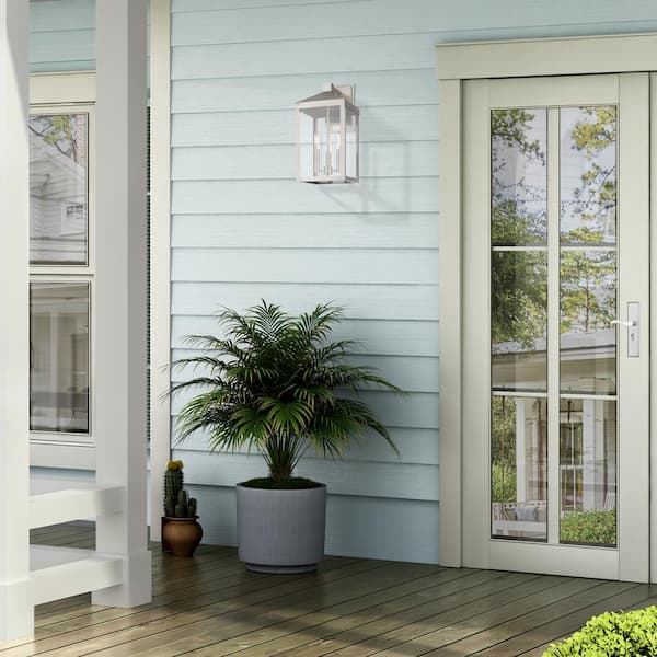 Creekview 17.5 in. 3-Light Brushed Nickel Outdoor Hardwired Wall Lantern Sconce with No Bulbs Included