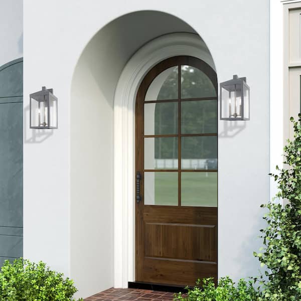 Creekview 17.5 in. 3-Light Nordic Gray Outdoor Hardwired Wall Lantern Sconce with No Bulbs Included