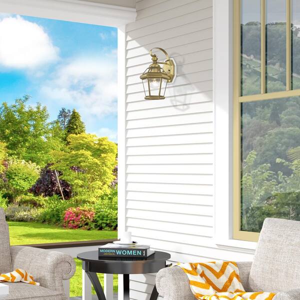 Cresthill 12 in. 1-Light Antique Brass Outdoor Hardwired Wall Lantern with No Bulbs Included
