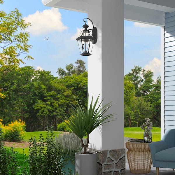 Cresthill 20.75 in. 2-Light Wall Black Outdoor Hardwired Wall Lantern Sconce with No Bulbs Included