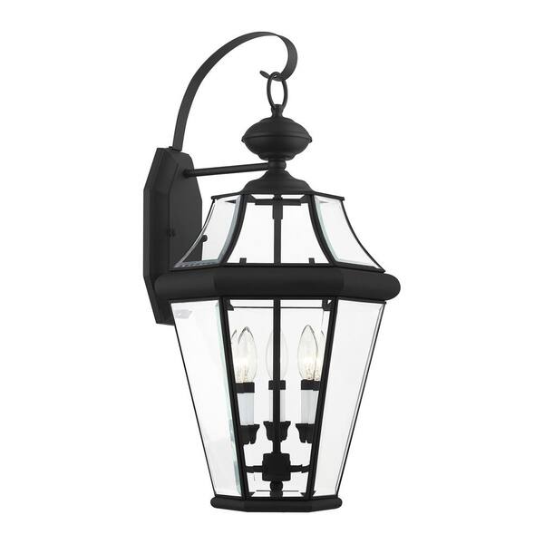 Cresthill 24 in. 3-Light Black Outdoor Hardwired Wall Lantern Sconce with No Bulbs Included