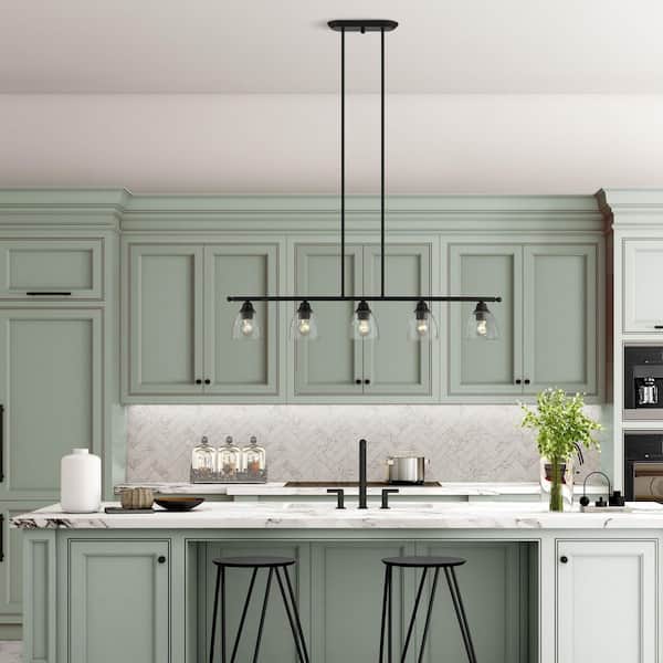 Grandview 5-Light Black Linear Chandelier with Clear Glass