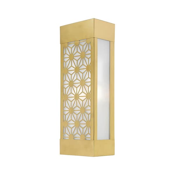 Hammond 17 in. 2-Light Satin Gold Outdoor Hardwired ADA Wall Lantern Sconce with No Bulbs Included