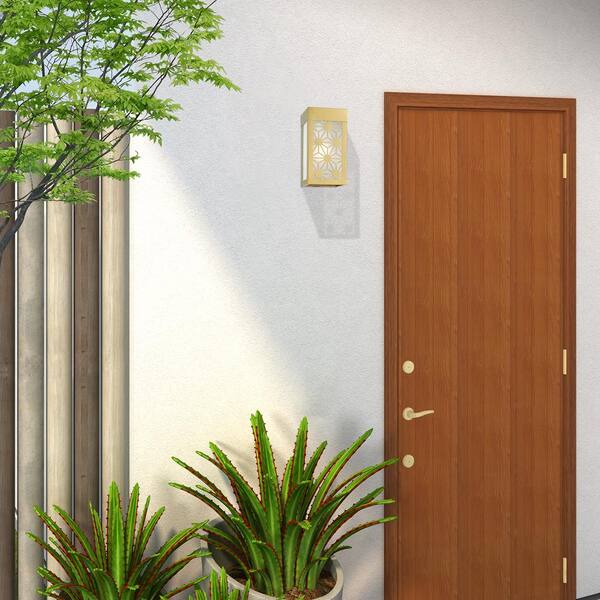 Hammond 8.5 in. 1-Light Satin Gold Outdoor Hardwired ADA Wall Lantern Sconce with No Bulbs Included