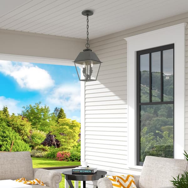 Helmsdale 15in. 2-Light Charcoal Dimmable Outdoor Pendant Light with Clear Glass and No Bulbs Included