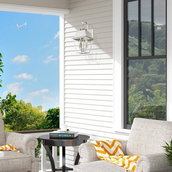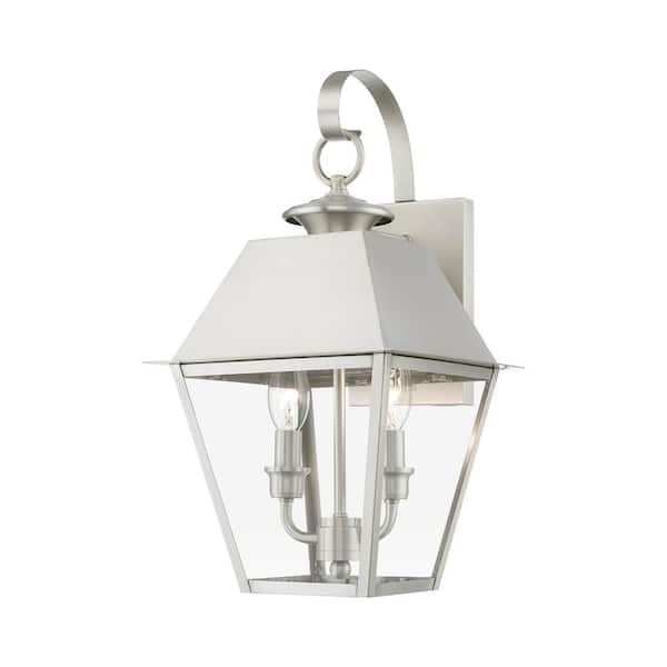 Helmsdale 16.5 in. 2-Light Brushed Nickel Outdoor Hardwired Wall Lantern Sconce with No Bulbs Included