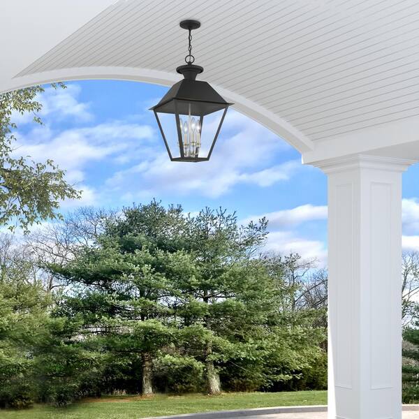 Helmsdale 24.5 in. 4-Light Black Dimmable Outdoor Pendant Light with Clear Glass and No Bulbs Included