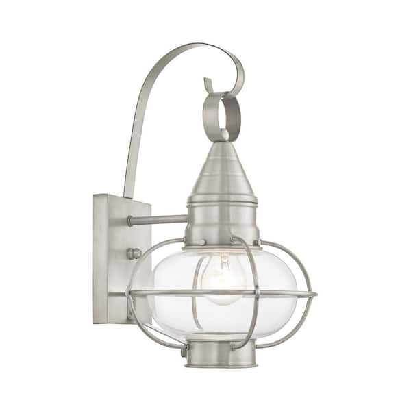 Hennington 14.75 in. 1-Light Brushed Nickel Outdoor Hardwired Wall Lantern Sconce with No Bulbs Included