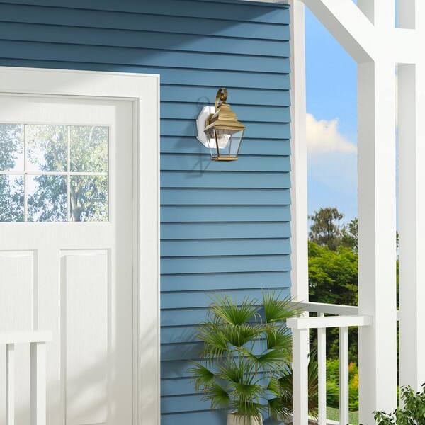 Millstone 15.5 in. 1-Light Antique Brass Outdoor Hardwired Wall Lantern Sconce with No Bulbs Included