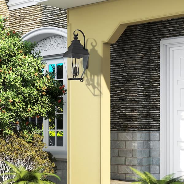 Millstone 37 in. 4-Light Black Outdoor Hardwired Wall Lantern Sconce with No Bulbs Included