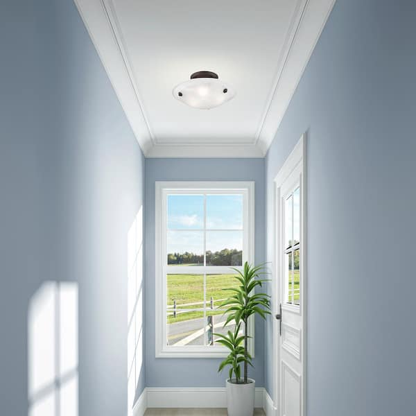 Oasis 12 in. 3-Light Bronze Semi Flush Mount with White Alabaster Glass