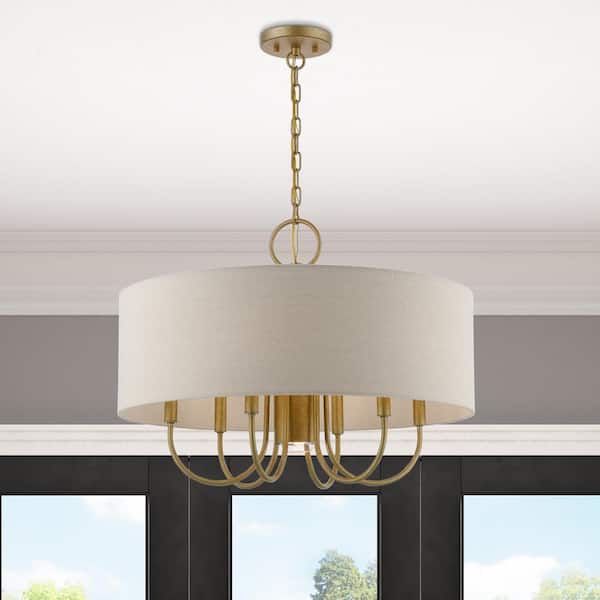 Richbrook 7-Light Antique Gold Leaf Pendant Chandelier with Parchment Fabric Shade