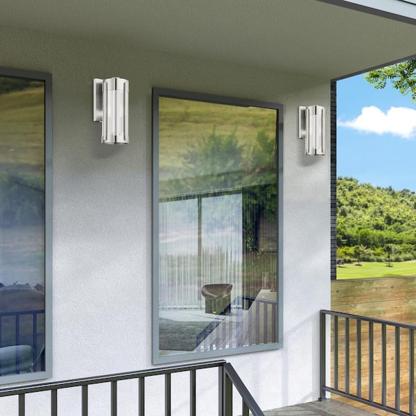 Rockridge 16 in. 2-Light Brushed Nickel Outdoor Hardwired Wall Lantern Sconce with No Bulbs Included