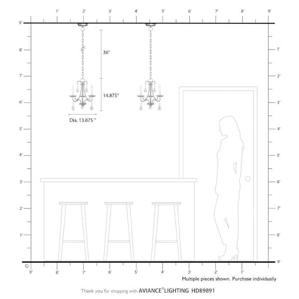• Uses 3 x 60-Watt candelabra base bulbs, sold separately