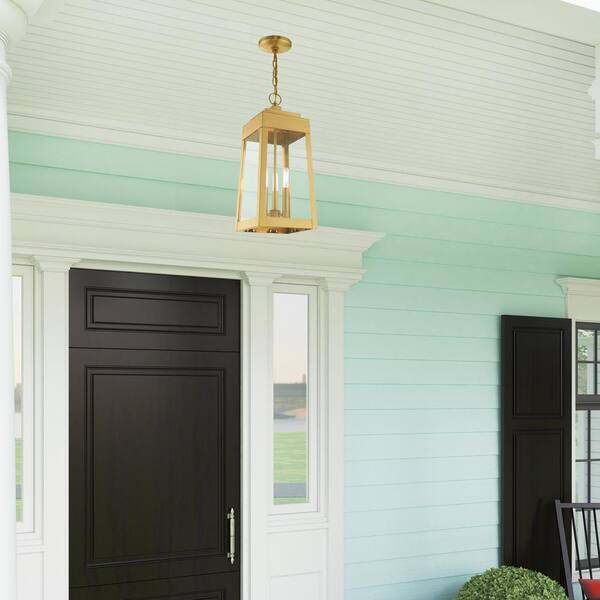 Vaughn 19.75 in. 3-Light Satin Brass Dimmble Outdoor Pendant Light with Clear Glass and No Bulbs Included