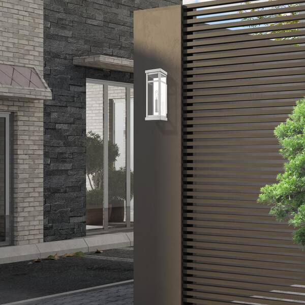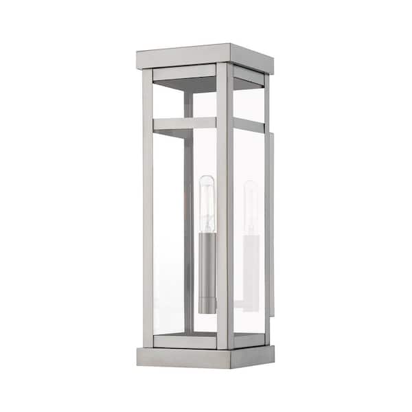 Wessex 15 in. 1-Light Brushed Nickel Outdoor Hardwired Wall Lantern Sconce with No Bulbs Included
