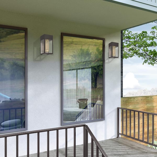 Westcrest 16 in. 1-Light Bronze Outdoor Hardwired Wall Lantern Sconce with No Bulbs Included