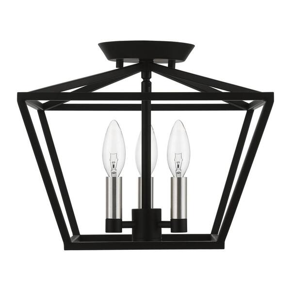 Westridge 12.5 in. 3-Light Black Semi-Flush Mount with Brushed Nickel Accents
