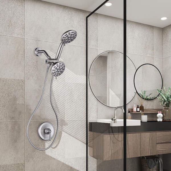 2-in-1 Single Handle 7-Spray Wall Mount Shower Faucet 1.8 GPM with High Pressure Balance in Brushed Nickel