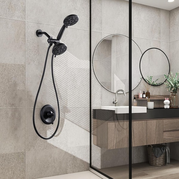 2-in-1 Single Handle 7-Spray Wall Mount Shower Faucet 1.8 GPM with High Pressure Balance in. Matte Black