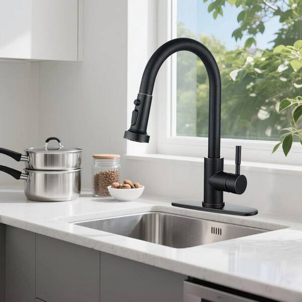 3-Mode Single Handle Pull Down Sprayer Kitchen Faucet with Deckplate in Oil Rubbed Bronze