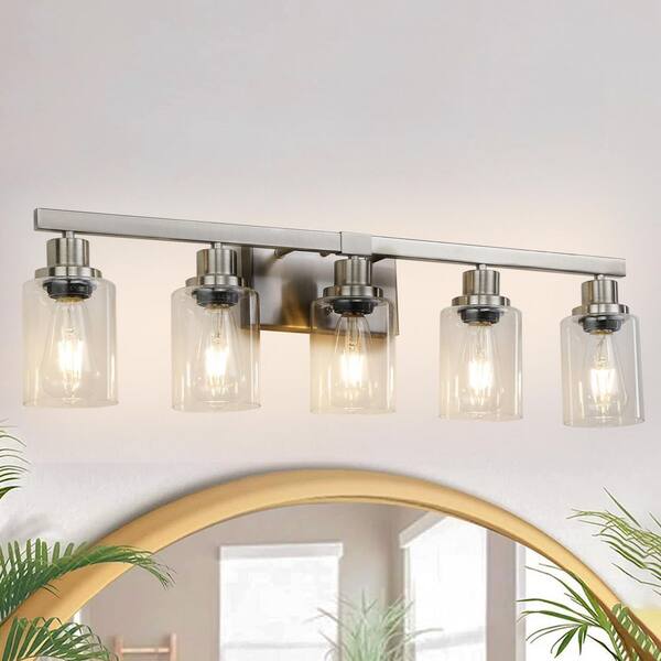 31.1 in. 5-Light Rustic Nickel Bathroom Vanity Light with Clear Glass Shades for Mirror, Vanity (Bulb Not Included)