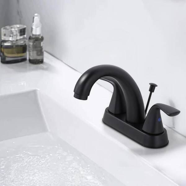 4 in. Centerset Double Handle Bathroom Faucet with Drain Kit Included in Matte Black