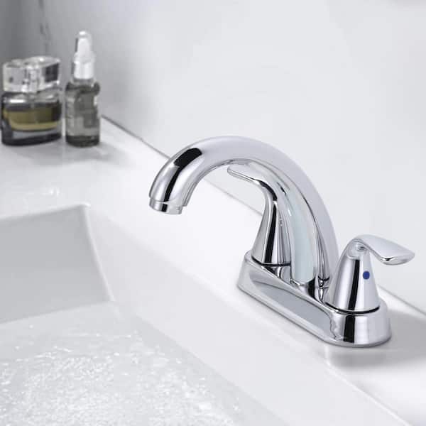 4 in. Centerset Double Handle Bathroom Faucet with Drain Kit Included in Polished Chrome