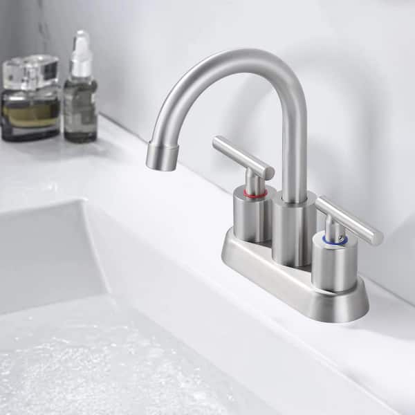 4 in. Centerset Double Handle High Arc Bathroom Faucet with with Pop Up Drain and Water Supply Hoses in Bruhsed Nickel