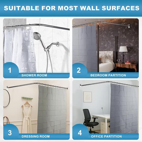42"-48" x 72"-78" Stainless Steel Bathroom Adjustable Shower Curtain Rod with 16 Hooks and Ceiling Support in Chrome