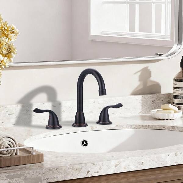 8 in. Widespread 2-Handle Bathroom Faucet with Pop-up Drain 3-Hole 360° Rotation Sink Faucet in Oil Rubbed Bronze