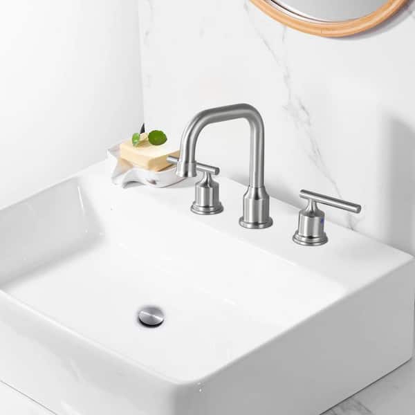 8 in. Widespread 3 Hole Lead-Free Double Handle Bathroom Faucet with Pop-up Drain and Supply Lines in Brushed Nickel