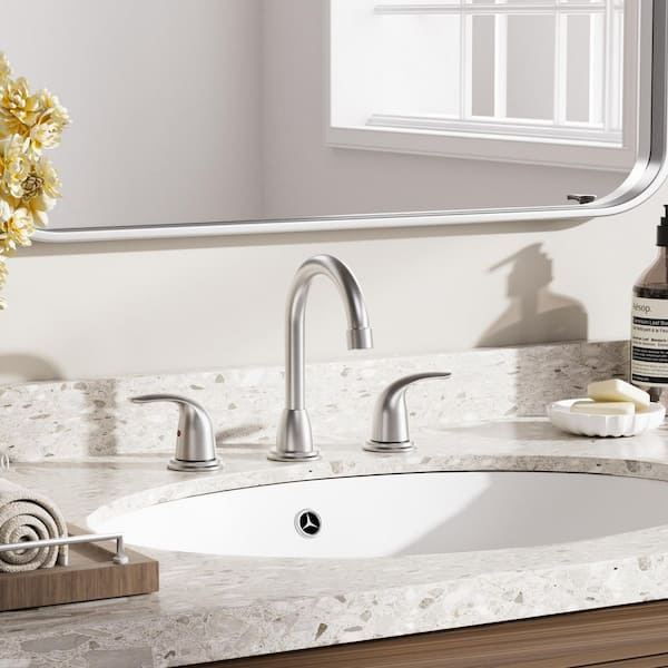 8 in. Widespread Double Handle Bathroom Faucet with Drain Kit Included in Brushed Nickel