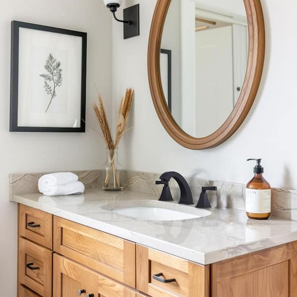 8 in. Widespread Double Handle Bathroom Faucet with Drain Kit Included in Matte Black