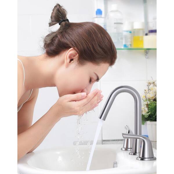 8 in. Widespread Double Handle Bathroom Faucet with Drain Kit and Supply Lines Included in Spot Resist Brushed Nickel