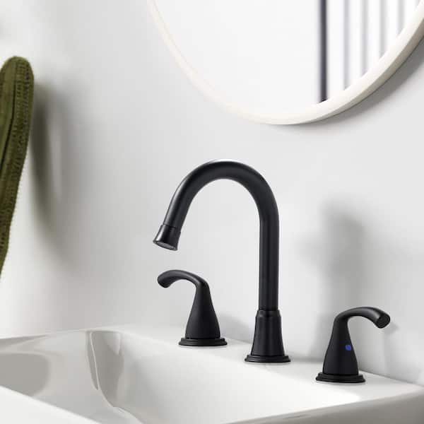 8 in. Widespread Double Handle Bathroom Faucet with Pop-up Drain Included in Matte Black
