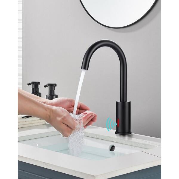 Automatic Sensor Touchless Bathroom Faucet with Deckplate Included in Matte Black