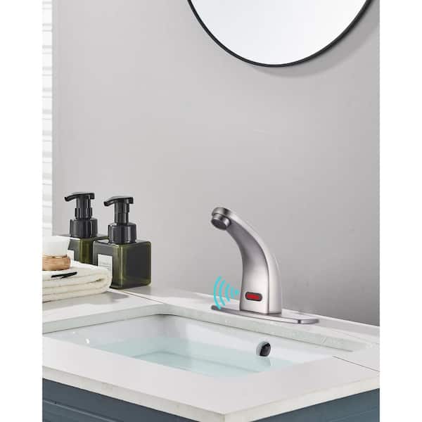 Automatic Sensor Touchless Single Hole Bathroom Faucet with Battery Operated Temperature Mixer and Deckplate in Nickel