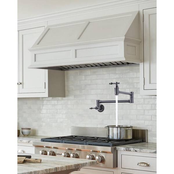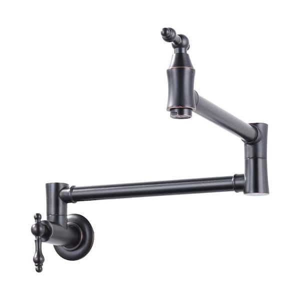 Brass Wall Mouned Pot Filler Kitchen Faucet, Modern Kitchen Faucet with Double Joint Swing Arm in Oil Rubbed Bronze