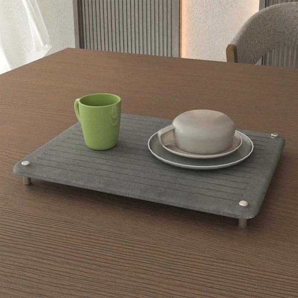 Dark Gray Drying Mat, Diatomaceous Dish Drying Mats with Non-Slip Stainless Steel Feet