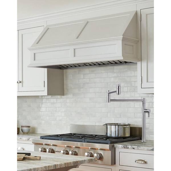 Deck Mounted Brass Pot Filler Folding Kitchen Faucet with Stretchable Double Joint Swing Arms in Brushed Nickel
