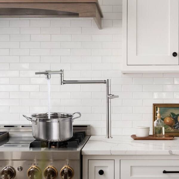 Deck Mounted Pot Filler with Double Handles in Brushed Nickel