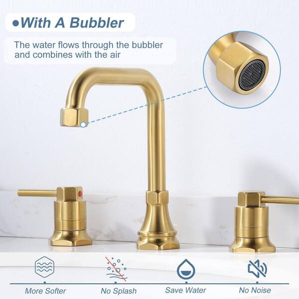 Double Handle 8 in. Widespread Bathroom Faucet, 3 Hole Bathroom Sink Faucet with Pop-Up Drain Kit in Brushed Gold