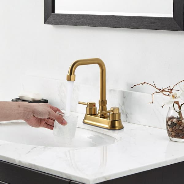 Modern Double Handle 4 in. Centerset Bathroom Faucet, Bathroom Faucet with Pop-Up Drain Assembly in Brushed Gold
